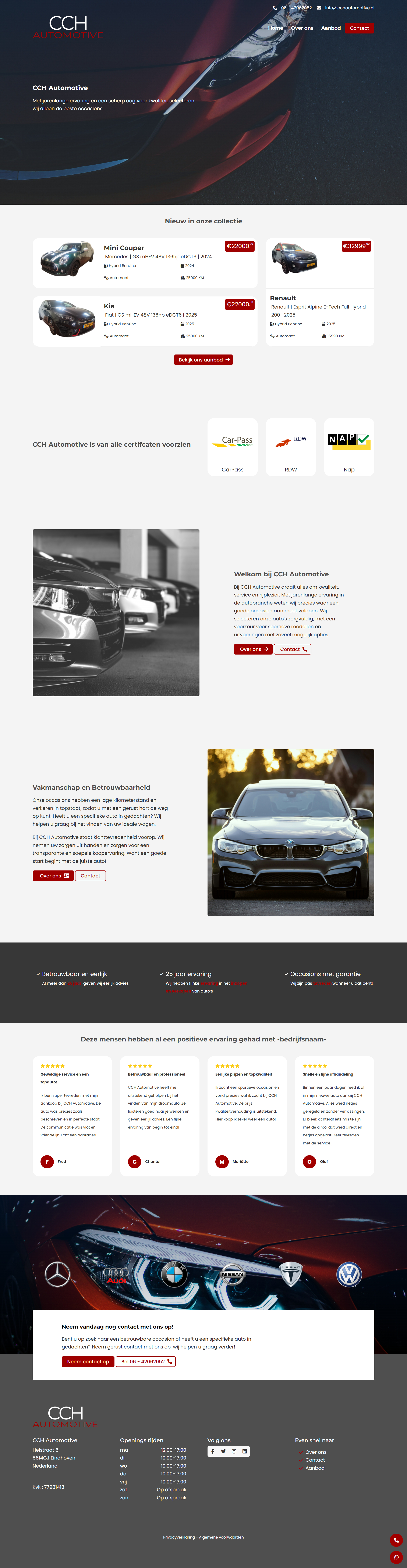Met een combinatie van een stoer design, slimme technologie en een gebruiksvriendelijke interface hebben we een website gecreëerd die perfect aansluit bij de visie van CCH Automotive. Het is niet zomaar een online visitekaartje, maar een volwaardige digitale showroom waar klanten met vertrouwen hun volgende auto kunnen vinden.