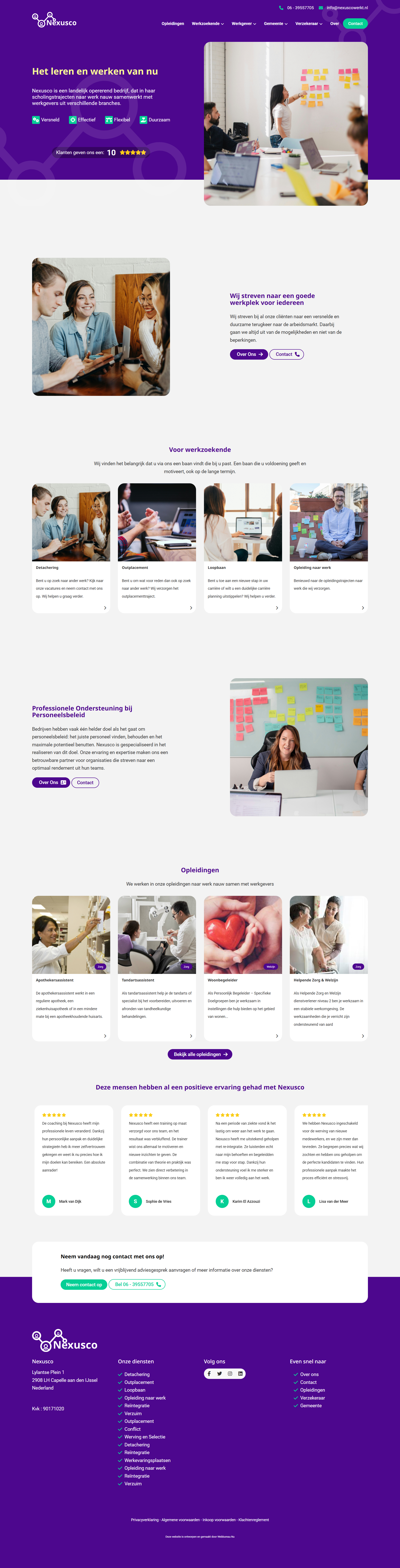 Bekijk de website van NexusCo Werkt hierDe oude website voldeed niet meer aan de huidige online standaarden: de structuur was onduidelijk, de uitstraling gedateerd en de gebruikservaring kon beter. We zijn daarom vanaf de basis opnieuw begonnen, met een frisse, professionele en toegankelijke look.