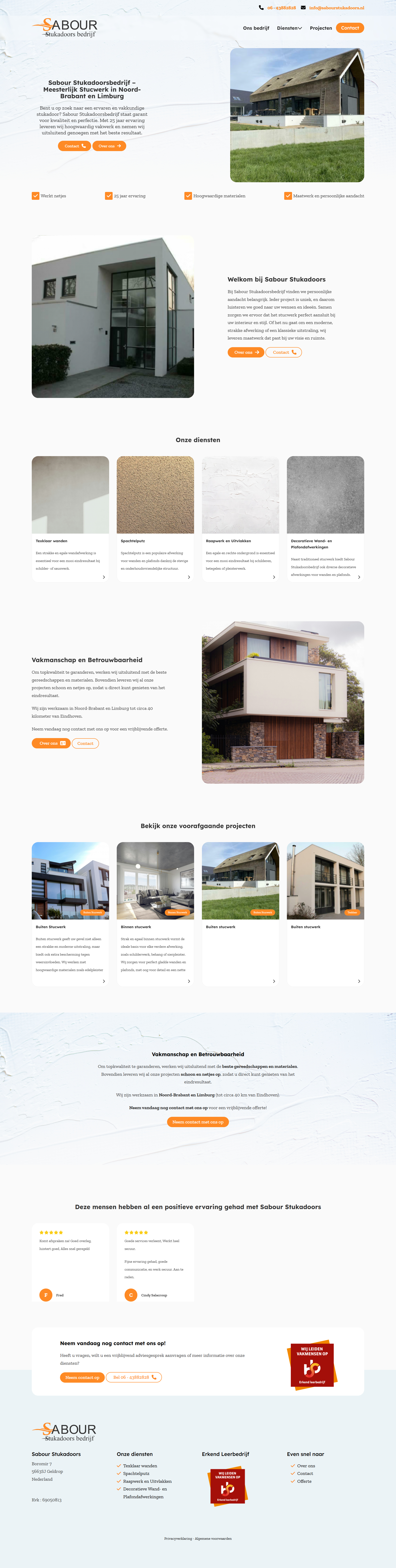 Omdat Sabour Stucadoors zich onderscheidt met kwalitatief hoogwaardig en strak afgewerkt stucwerk, moest de website dit ook uitstralen. We hebben gekozen voor een op maat ontworpen webdesign, met: