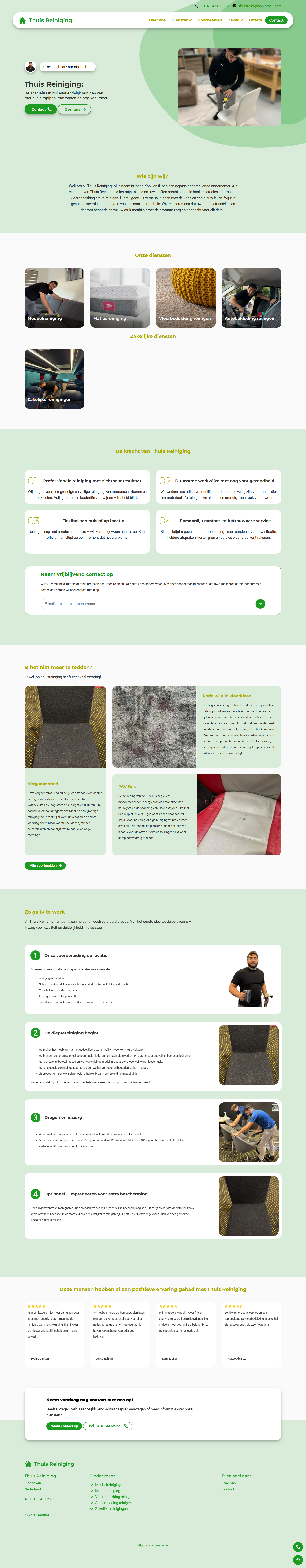 De combinatie van design en luchtige copy zorgde voor meer aanvragen én positieve reacties van klanten die de toon van de site direct herkennen als “typisch Thuisreiniging.nl”.